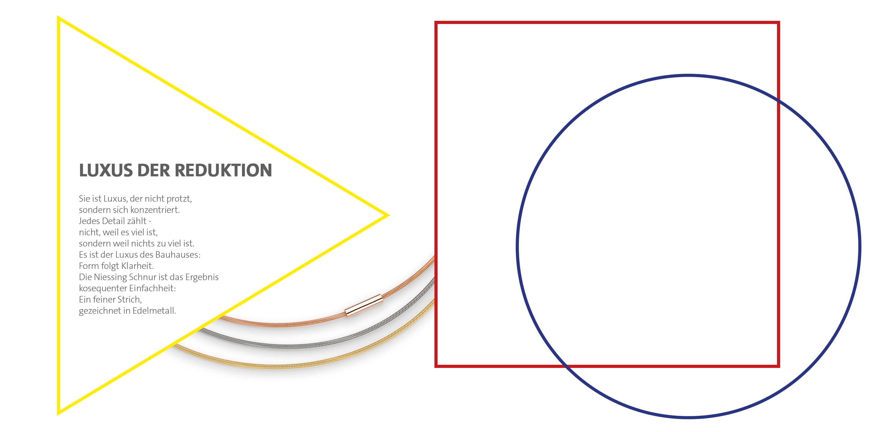 Die Niessing Schnur ist von Beginn an als Trägersystem konzipiert. Mit den Kollektionen Colette, Colette C und Colette Elementyx entstehen neue Ausdrucksformen: schwebende Anhänger, modulare Elemente, präzise gesetzte Diamanten, kombinierbare Formen. Ein System, das mit jeder Idee wächst.
