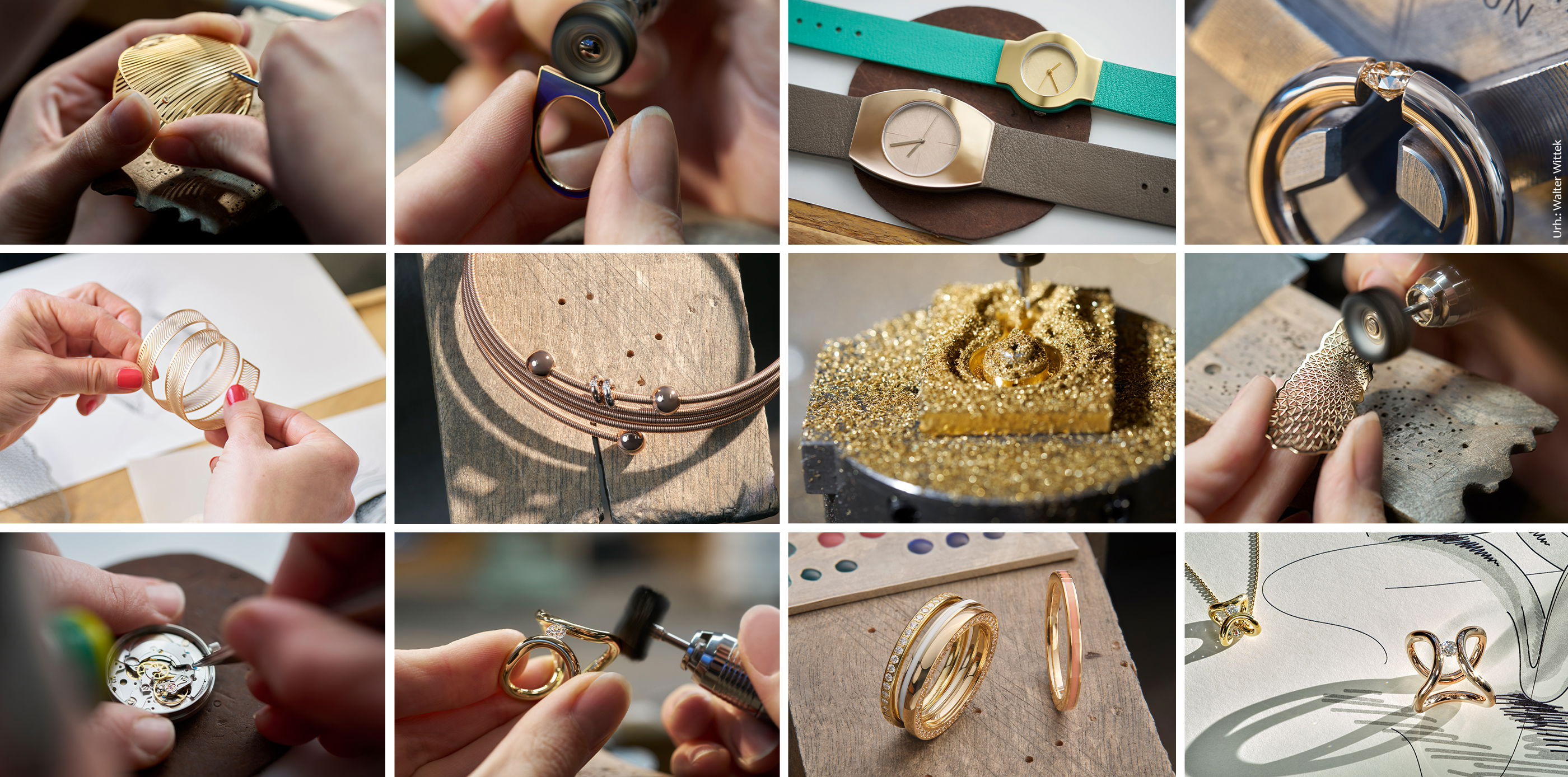 Voordat een sieraad af is, is het al door vele professionele handen gegaan. Er wordt gewerkt met de meest diverse technieken: van traditioneel tot uitermate innovatief. Eerst werkt de rustige hand van de goudsmidmeester aan het sieraad en meteen daarna de modernste laser.