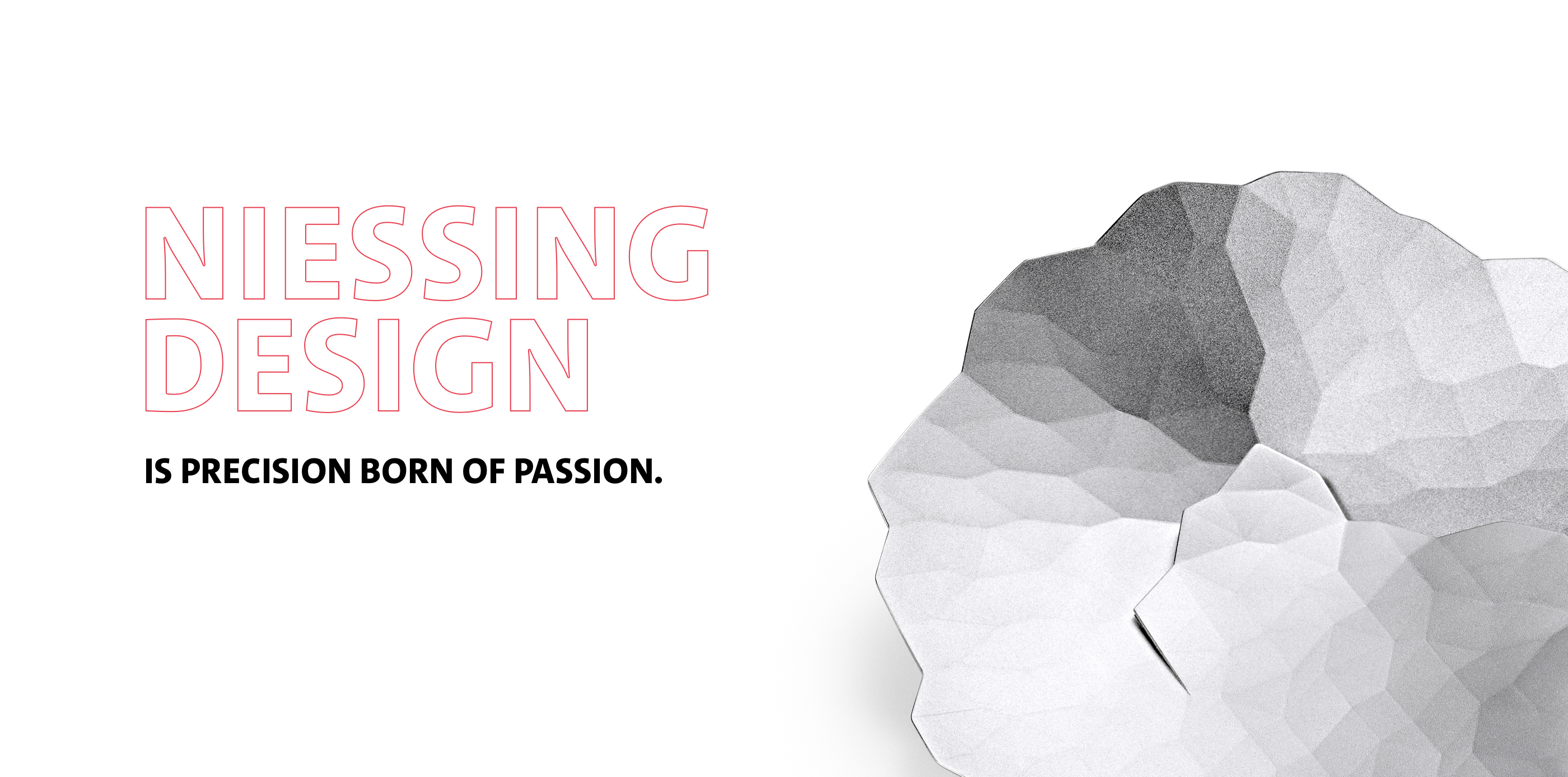 Al meer dan 50 jaar is de ontwerpstudio van Niessing hét ultieme, creatieve centrum van innovatieve ideeën. Een hechte samenwerking tussen ontwerpers en productie, gebaseerd op het vertrouwen in elkaars kennis en kunde, vormt de basis van het dagelijkse werk.