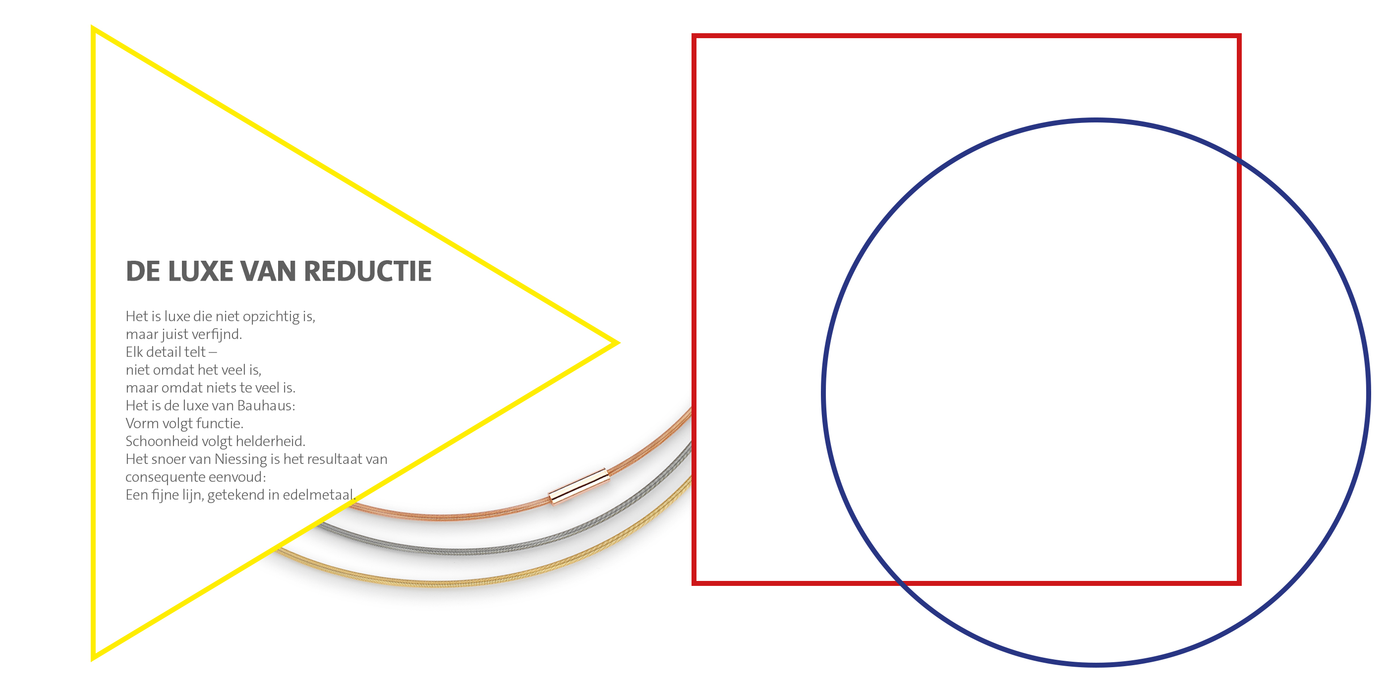Het Niessing snoer is vanaf het begin ontworpen als een draagsysteem. Met de collecties Colette, Colette C en Colette Elementyx ontstaan nieuwe uitingsvormen: zwevende hangers, modulaire elementen, precies geplaatste diamanten, combineerbare vormen. Een systeem, dat groeit met elk idee.
