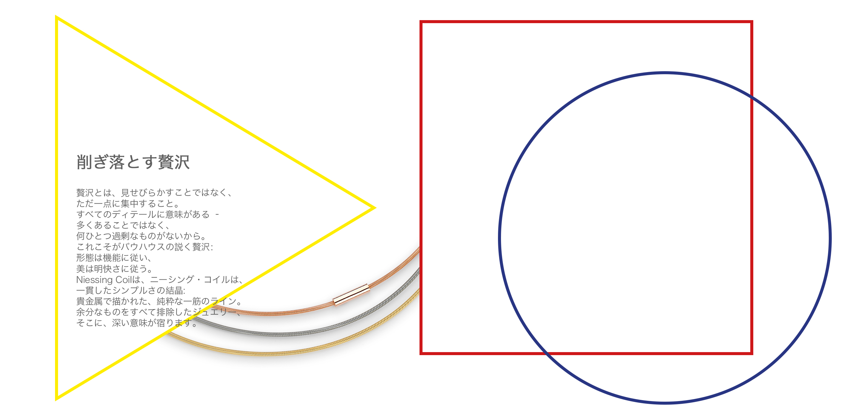 静謐さは集中力を生み、削ぎ落としは表現を生み、構造は軽やかさをもたらします。このコイルは、思考と技術、そして職人技の結晶です。ゴールドやプラチナが描く究極のラインが「本質」を、鮮やかに映し出します。