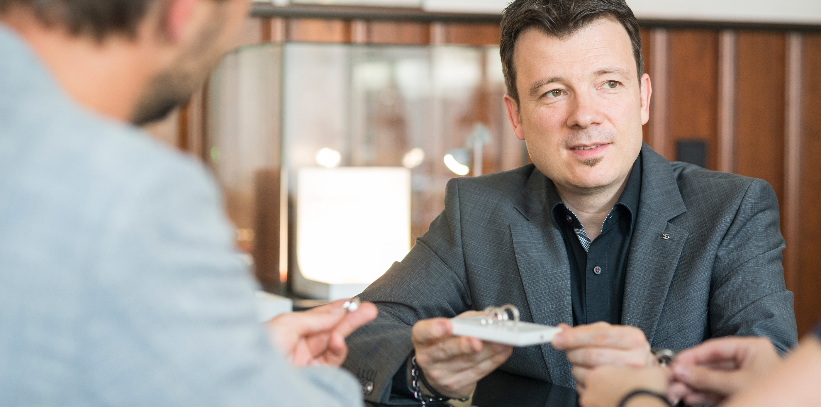 ゆったりした雰囲気の中、マリッジリングやテンションリング、その他のニーシング・ジュエリーをご覧になり、実際に試着してみてはいかがでしょう。あなたにぴったりのジュエリーがきっと見つかります。